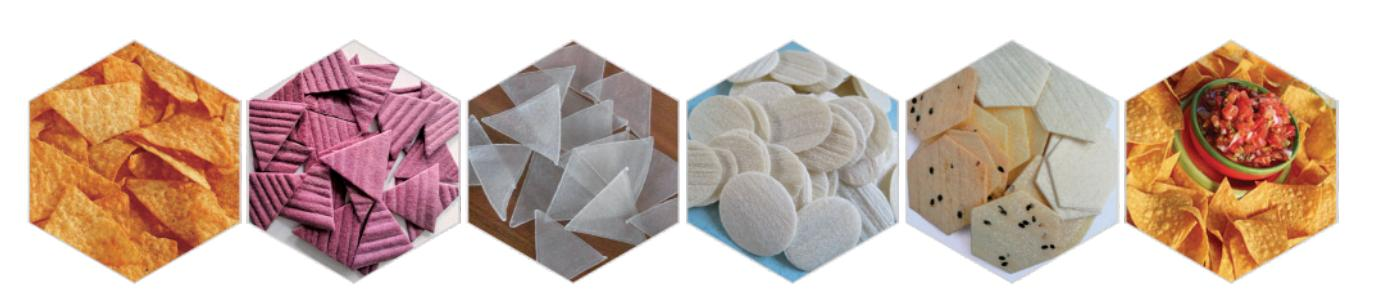 دوريتوس/تورتيلا/رقائق الذرة هي أنواع من الوجبات الخفيفة المصنوعة من مسحوق الذرة، والتي يتم تقطيعها ثم قليها.المواد الخام الرئيسية هي مسحوق الذرة والماء والزيت النباتي والملح.على الرغم من أنها عادة ما تكون مصنوعة من الذرة الصفراء (كما هو موضح في الصورة)، إلا أنها يمكن أن تكون مصنوعة أيضًا من الذرة البيضاء أو الحمراء أو دقيق القمح.بعد القلي والنكهة، نحصل على رقائق مثلثة أو أشكال أخرى مقرمشة للغاية والتي تحظى بشعبية لدى الأطفال والكبار على حد سواء.
