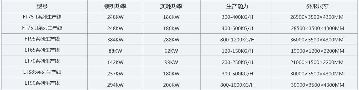 آلة خلط المسحوق ← ناقل لولبي ← آلة بثق لولبية مزدوجة ← مصعد ← فرن ← وحدة التكسير ← آلة تعبئة المسحوق