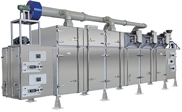 حقل التطبيق الرئيسي لمجفف الدورة الدموية المتقاطعة هو علاج تجفيف المواد من الطعام المنتفخ من اللحوم العالية ، والأطعمة المخبوزة وغيرها من الأطعمة الجافة للحيوانات الأليفة ، والمنتجات المائية المائية ، وبروتين الخضار الجاف المعالجة بالمعالجة الجافة والوجبات الخفيفة الفراغية المنتفخة. يمكن أن يحل بشكل فعال نضوج وتجفيف الأعلاف المائية المنتفخة أو تغذية الحبيبات أو الطعام ، بحيث يمكن للكريات تحقيق مقاومة مثالية للماء وتحسين جودة مظهر الكريات. يحتوي المجفف على نظام تداول الهواء الساخن ، والذي يحتوي على استهلاك منخفض للطاقة وتكلفة منخفضة وموثوقية جيدة. بالإضافة إلى ذلك ، يتم تجهيزه أيضًا بموزع قابل للتعديل وجهاز توزيع موحد لجعل توزيع المواد أكثر تواجدًا وضمان توحيد المواد المجففة.